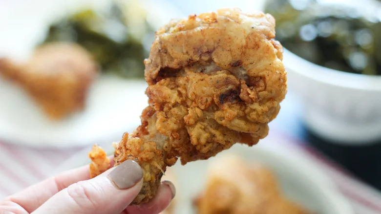 The key to this recipe is the buttermilk marinade, which is acidic enough to help break down the chicken proteins, helping to tenderize it. And as the recipe specifies, do not overcrowd your pan when frying the chicken. Doing so lowers the temperature of the oil, causing the chicken to cook unevenly and making the skin greasy and soggy.