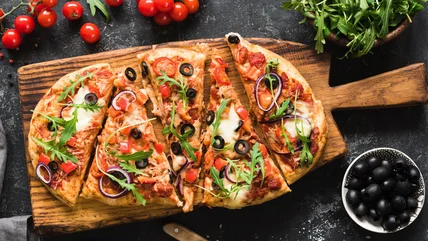 In addition to the dough recipes, some think that size may be a distinguishing factor between pizza and flatbread. Flatbreads are typically smaller than traditional pizzas, which is why you'll often see a topped flatbread offered as an appetizer, not as a main meal. Others think that the shape could be a way to tell the two apart as many pizzas are circular, or rectangular (like Sicilian or Detroit-style pizza), and flatbreads often have a more freeform shape.