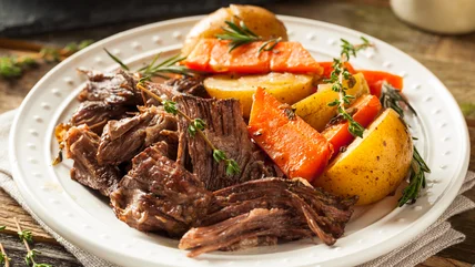 The goal with any roast beef is that it be tender — but this isn't always easy to accomplish. Traditionally tender cuts, like rib roast, can be overcooked; cheaper ones, like brisket or shank, are naturally chewy, to put it mildly. (It's easy to tell the difference between tender and tough cuts of meat if you know the rule.) The good news about anything traditionally called pot roast (top round, bottom round, rump, chuck, et cetera) is that they're less expensive and more flavorful than more tender cuts; the bad news is that they're notoriously tough. But fret not! There's a foolproof (if lengthy) method of cooking these roasts that (quite literally) renders them fall-apart tender and intensely flavorful. The technique is correctly called sous vide cooking, but think of it as an extended water bath.