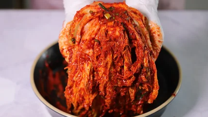To infuse pickled eggs with the flavors of kimchi, one approach is to use the leftover kimchi brine straight from the jar along with some kimchi, and add more vinegar to it to fully submerge the eggs. Alternatively, if you need to skip the vinegar, you can nestle the hard-boiled eggs along with the other kimchi ingredients to make kimchi.