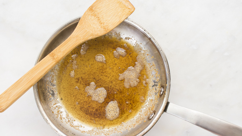 If you're wondering just what brown butter is, this nutty liquid is just regular butter that's been cooked until the milk in the butter becomes toasty. In order to achieve this, you must cook butter on your stovetop slightly past the melting point of butter. All it takes is a few short minutes to see the tell-tale signs that your brown butter is ready.