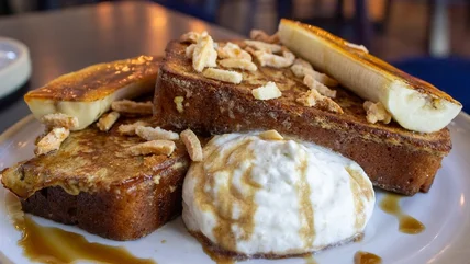 Bananas and chocolate are a time-tested pairing, so why not sprinkle mini chocolate chips on top for a superbly sweet treat that veers decidedly into dessert territory, or satisfy your sweet tooth by drizzling the French toast in chocolate sauce? Or, give the dish a punch of protein with a spread of peanut butter (which will also pair well with any maple syrup you wish to add). And, of course, Nutella is another great option for its thicker consistency and nuttiness, which will lend the dish extra decadence and nuance. By using banana bread in place of a more conventional loaf, you can take your French toast in a number of interesting directions.