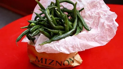 This green bean recipe originates from the Israeli chain restaurant Miznon, which serves fast-casual Mediterranean food. The restaurant offers a menu item called "bag of greens," which are green beans seasoned with salt, olive oil, lemon juice, and garlic. The green beans are served like a snack in a brown paper bag with crumpled parchment paper. This way of cooking and enjoying green beans has received high praise on the social media platform.