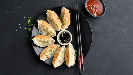 While meats and vegetables are important, jiaozi derive their signature flavor from the accompanying sauce. Dumpling sauces utilize several ingredients, but most make use of a pungent garlic kick and an umami-rich vinegar. Chili oil is a popular addition, and its spice levels can range from mild to intense depending on your taste. Soy sauce and sesame oil are also found in many recipes; the two give off salty and nutty flavors that pair extremely well with the heat of the chili oil. When completed, the dumplings should be drizzled with a healthy dose of sauce or dunked directly into dishes filled with this liquid umami blend.