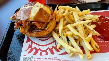 According to a review conducted by Daily Meal staff, the Pretzel Baconator was deemed "a darn good burger," although the paltry portion of bacon was duly noted. However, the high price of the menu item is causing consternation among fast-food fans on Reddit. According to one commenter, the Pretzel Baconator will run you a whopping $9.79 in New York City. Another stated that the burger costs $9.99 in Los Angeles, or $14.99 as a medium combo.
