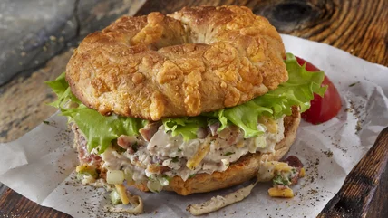 While serving a classic chicken salad on a plate over a bed of lettuce is standard, you can get creative with how you feature this dish too. Much like a barbecue sandwich, this unique take on chicken salad would taste delicious on a toasted bun. Slather some additional sauce onto each half of the bun for some extra tang, and for a really comforting twist, warm your chicken salad before serving it for some added smokiness and depth.