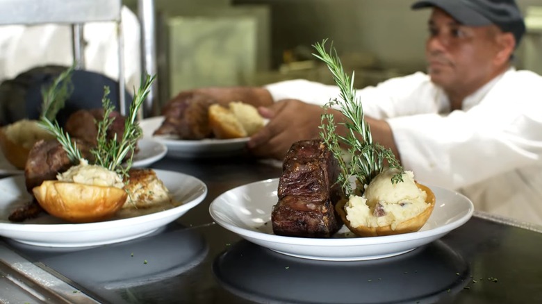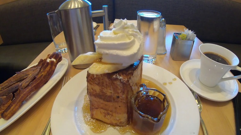 Harrah's is a casino hotel that's owned by Caesars Entertainment. Thus, it's little surprise that the Atlantic City hotel boasts a range of celebrity-owned restaurants, from the likes of Bobby Flay, Gordon Ramsay, and Guy Fieri. Of these three, only Flay's restaurant, Bobby's Burgers, is open for breakfast. Here, customers can expect to enjoy indulgent breakfast sandwiches packed with scrambled eggs, sausages, and cheese. These are topped with potato chips — an addition that many customers greatly enjoy. Those seeking lighter dishes have the choice of a Greek Yoghurt Parfait or Cinnamon Maple Oatmeal.