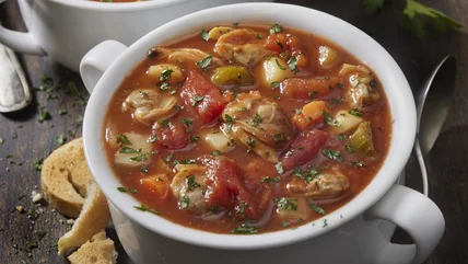 Craving New England clam chowder but can't deal with the dairy? The classic soup's cousin, Manhattan clam chowder, is the perfect dairy-free version that's bursting with robust flavors. This savory soup features a tomato-based broth, the briny essence of fresh clams and clam juice, and an array of vegetables, including onions, celery, carrots, and potatoes.