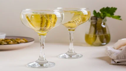 Unless you plan to garnish your martini with a meal's worth of pickles, you'll need some complementary food pairings to soak up all that boozy, briny goodness. Serve your pickle martini with something hearty, like a succulent filet mignon or charred chicken breast to ground the brightness of the drink with the umami-packed flavor of meat.