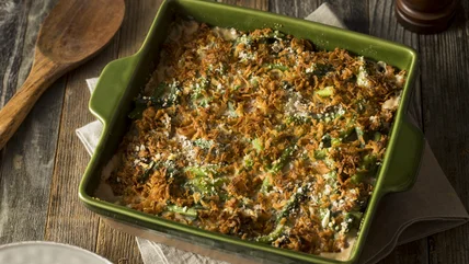 Green bean casserole may be a classic, but the flavors of the dish don't exactly have much dimension. The original recipe Campbell's created in 1955 called for canned cream of mushroom soup, canned green beans, water, and French fried onions, and the only seasonings were celery salt, soy sauce, worcestershire sauce, and pepper. Today the brand's recipe is even simpler, only containing the soup, green beans, soy sauce, French fried onions, and milk instead of water.
