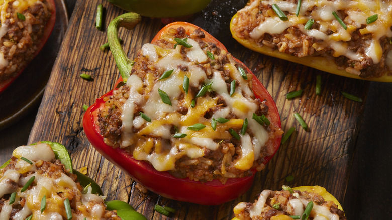 Bell peppers are central to Italian cooking, and you'll usually see them diced up in sauces or toppings. However, because this vegetable is so versatile, you'll also see it cut in half and stuffed with a mixture of beefy goodness. While beef admittedly isn't the best type of meat for your health (red meats in general aren't as great), the relatively small amount in Italian stuffed peppers is acceptable, especially when you weigh the benefits of everything else inside.