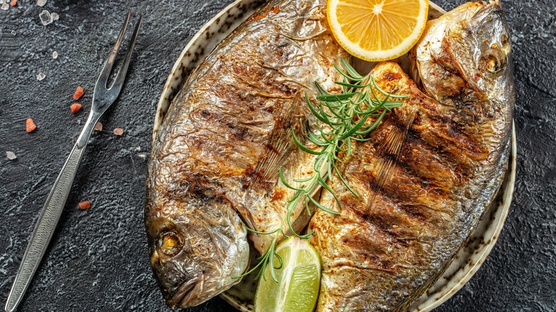 One excellent dish to order at an Italian restaurant is grilled sea bream, or orata. Not only does the fish have a rich flavor, but its meat is pretty juicy, too. More importantly, this menu item is grilled instead of fried, and there's no breading, either. The fish is lightly coated with olive oil and often seasoned with tomatoes, rosemary, and garlic. It's a healthy and incredibly aromatic dish to feast on. And even better is that it's an easy plate to split.