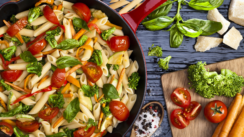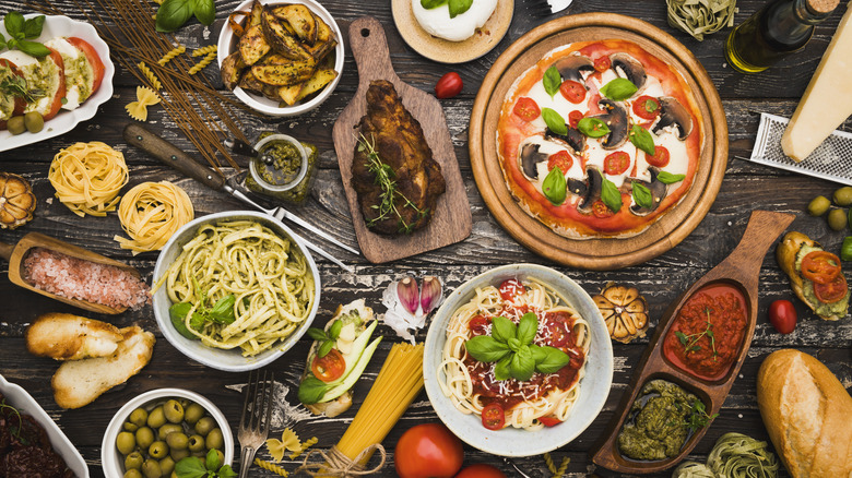 What's striking about this Italian dish is its abundance of vegetables. In fact, in lieu of fatty cheeses and meat ragùs, pasta all'Ortolana features a veggie sauce made by cooking down greens such as eggplants, carrots, onions, peppers, and garlic. The lack of meat means this is a good choice if you're a vegetarian but still love pasta. It's also terrific if you're not a fan of veggies but still want to get your daily recommended intake. Restaurants will pick the freshest vegetables to make a tasty combination. Some may even upgrade their sauce by adding tomato passata, a type of puree made from late-summer tomatoes that gives any recipe a fresh flavor that's hard to resist.