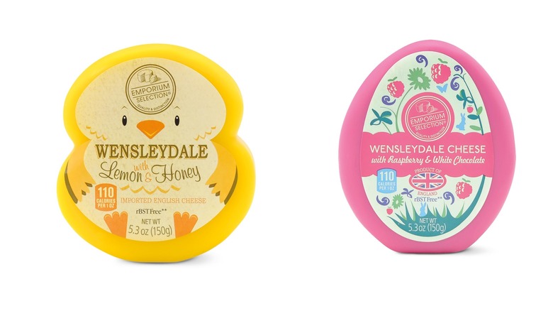 What's a celebration without cheese? Aldi's fan-favorite store brand cheese, Emporium Selection, is releasing three springy cheeses on March 20 for $3.99 per 5.3-ounce wax-sealed block. The Wensleydale with lemon and honey is decorated to look like a peppy little yellow chick, while the Wensleydale with raspberry and white chocolate is a pretty pink egg shape. For a more traditional cheese option, there is the aged English cheddar.