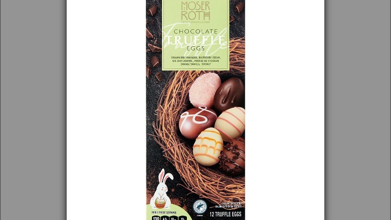If you'd rather have more chocolate truffles and less chocolate shell than you'd find in your chocolate surprise egg, bags of chocolate truffle eggs will also be available for $3.99 starting March 6. These milk, dark, and white chocolate truffles come in six flavors: Strawberry rhubarb, raspberry cream, sea salt caramel, mousse au chocolate, orange vanilla, and coconut.