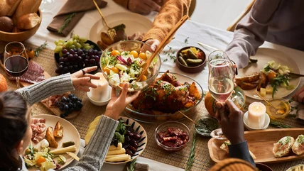 Keep in mind when you are serving any type of food to a crowd that many people have complex needs or restrictions. An RSVP to a dinner party may be difficult for those who are on a plant-based or vegan diet, or those who are navigating dietary changes due to health and lifestyle choices. Of course, you cannot be expected to cater to every single person's dietary restrictions, but you can craft a spread that allows guests to pick and choose which foods to enjoy. This is when a nice charcuterie board or even a potluck-style party will be especially beneficial.