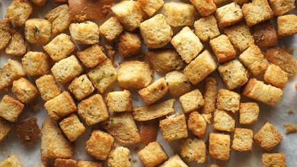 We've all been there. Your bread selection consists of the last heel in the loaf, a single bagel, two hoagie rolls, and the crunchy end of a baguette. You try to revive that day-old bread only to realize it's time to admit it's past its prime. But don't fret. Day-old, dried-out, and even undeniably stale bread is the perfect foundational ingredient for quick and easy homemade croutons. In fact, many people argue it's better than fresh bread for the simple reason that it results in a crispier crouton.
