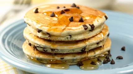 Like other acidic liquids, orange juice can be an ideal swap for milk or water in a store-bought pancake mix. Not only does it confer a delightfully citrus-forward aroma and flavor, the acidity leads to pillowy, golden brown flapjacks.