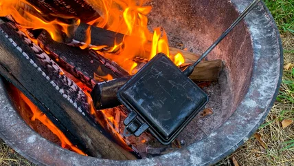 If you're sick of s'mores, pie irons offer endless possibilities for creating delicious camp foods. Campers in the Midwest know exactly what a pie iron is, but in case you haven't come across one, it's a campfire cooking tool consisting of two hinged cast iron (or less commonly, aluminum) concave plates at the end of two long handles. They come in various shapes and sizes, usually square or round, and are similar in design to a waffle iron but without the waffle pattern. Midwesterners, especially in Wisconsin, Illinois, Michigan, and Minnesota, have been using pie irons for decades to make delicious sweet and savory toasted pies, known as pudgy pies, campfire pies, and mountain pies. While equally delicious, these "pies" are more like toasted sandwiches with various fillings than traditional pies.