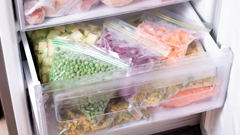 Freezer burn is arguably one of the biggest enemies of frozen food kept long-term. Freezer burn occurs when your food's water content travels to the surface, forming large ice crystals that are usually prevented by the flash-freezing process commercial frozen food undergoes. Over time, this can result in the food dehydrating, losing its taste, and altering its appearance. Luckily, you can prevent freezer burn by packaging your food properly. However, bear in mind that even well-packaged items will degrade when kept frozen for long enough.