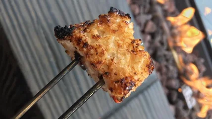 You can go about the process in a variety of ways. The first is to skewer each square to control the rotation, similar to when roasting marshmallows. Another option is to place the squares directly on the grill grate and flip them after a minute or two. If you're using a smoker or a grill with an indirect heat option, you can place an entire tray of Rice Krispies treats on there, allowing it to warm. This won't provide grill marks but will incorporate the smoky essence and contain any drippy messes.