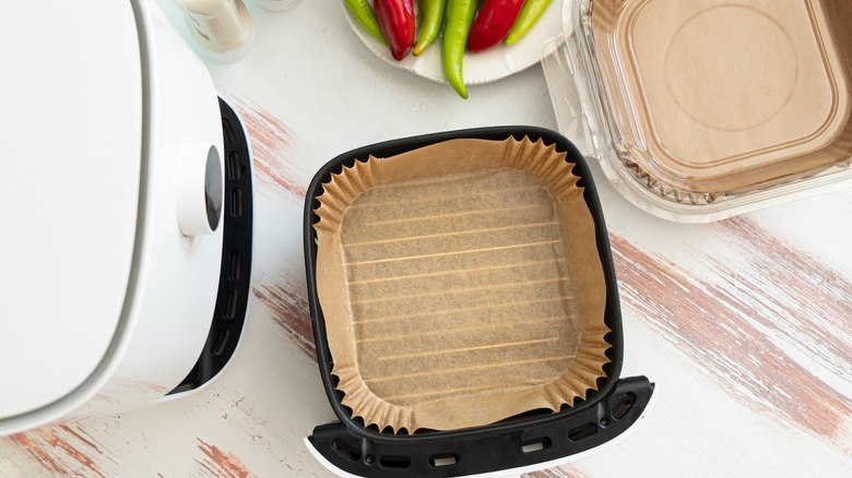 Because of the headache that comes with cleaning this popular kitchen gadget, it's best to take precautions so you don't have to break out the soap and sponge as often. One of the best methods for keeping an air fryer clean is to use a liner every time you cook. There are a ton of liner options out there, with some specifically made for air fryers, and some DIY. Still, there's one type of liner you should never use because it might ruin your air fryer, and that is wax paper.