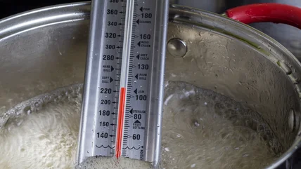 If you've ever made candy at home you know that a good thermometer is indispensable. Whether you're making nougat, gummies, or a simple caramel sauce from scratch, you need to measure exactly how hot your sugar is to achieve the perfect consistency. But if you've worked with sugar at home, you also know that clean up is the pits. Caramel can set up on your pans, spoons, and — yes, your thermometer. But there's a simple way to clean hardened sugar off your kitchen tools, and it involves nothing more than boiling water.