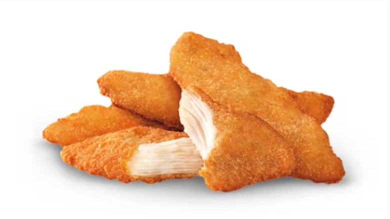 Despite containing 76 grams of fat and 546 milligrams of sodium per tender, somehow Long John Silver's current chicken tenders manage to taste bland. Some customers have even described it as tasting fake. Finally, Long John Silver's chicken is made from strips of breast meat and not the actual tenderloin. As a result, these pieces of chicken are far less tender than other chicken tenders mentioned in this article.