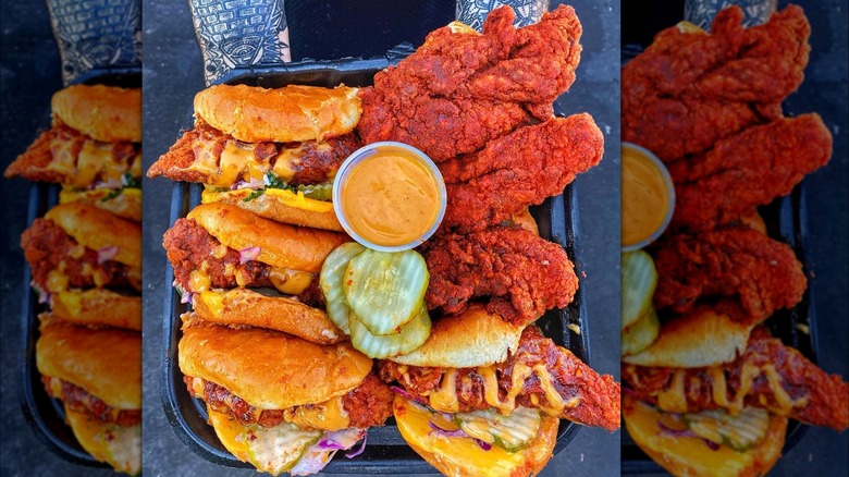 Ultimately, we find we get our money's worth at Dave's because of the quality. These tenders are tossed in your choice of spice rub, from Lite Mild to Reaper, and yes, the highest end of that scale brings the heat properly. Personally, we prefer the sliders, which are topped with Dave's sauce, pickles, and slaw and served on a potato roll. The combination of Dave's Nashville hot rub, pickles, and the chain's sauce hits a spot no other fast food chicken chain can at the moment.
