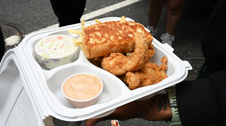 My colleagues at Daily Meal have spoken about how much the chicken from this Southern chain knocks its competitors out of the park. Bojangles' chicken seasoning isn't going for excess but refinement, and it will surprise you with just how good it tastes. These tenders have the perfect ratio of crunchy, craggy exterior to moist, juicy chicken on the inside. You are getting equal parts juicy chicken and crunch in every satisfying bite.