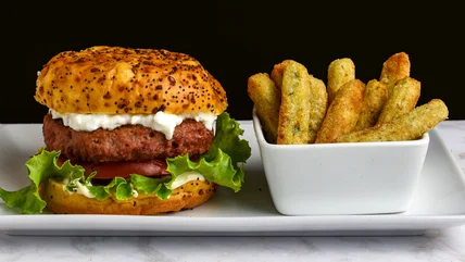 For a bagel-inspired burger, top your patty with a generous dollop of cream cheese for a rich, tangy, and satisfying sauce alternative. Or, swap out the beef for a homemade salmon patty or smoked salmon burger. Salmon pairs well with the cream cheese and sliced red onion, echoing the classic combination found in a bagel with lox.