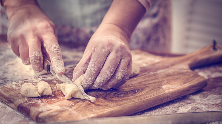 Before diving into the merits of adding gnocchi to your French onion soup, let's touch on what it is. These little dumplings originated in the Northern part of Italy, shaped by that region's climatic conditions. It was cold, so potatoes grew well there but the grains suffered. As a result, these little "lumps" — which is what gnocchi translates to in Italian — were created. Gnocchi is traditionally made from potatoes, flour, and eggs.