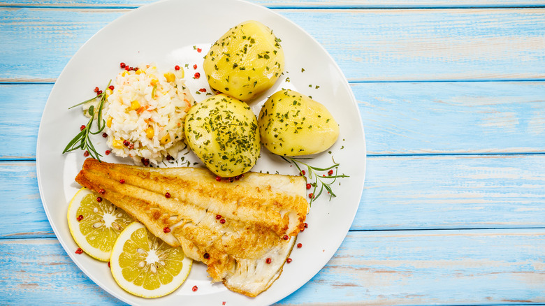 Unlike some fish, which may flaunt that quintessential "fishy" flavor, flounder boasts a mild, slightly sweet taste accented by buttery notes and nutty undertones, perfect for those who are new to seafood or have a difficult time getting it down. Because it has a more mellow taste than some other fish — one likened to the laid-back flavor of halibut — flounder is easily dressed up with seasonings, spices, and sauces, making it more appealing to picky eaters. If your seafood-averse friends can't stomach the smell of fish, they don't need to fret when flounder's on the menu. With its fresh, clean, and delicately briny scent, flounder rouses rather than ravages the senses.