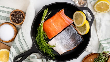But despite all these qualities, there's still a large swath of people turned off by salmon's distinct flavor. And while it's true that certain varieties can have a faint down-by-docks taste and odor, this is certainly not true for every species of salmon you encounter. But what if you could capture all of salmon's advantages without that fishy taste? Well, then you've got to try coho salmon. This species of salmon has a softer, sweeter flavor than other varieties like king, sockeye, or Atlantic. It is particularly delicious when poached or lightly sautéed, and has a smooth, buttery texture.