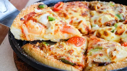 Achieving delicious reheated pizza in your cast iron skillet is relatively easy; simply place those leftover slices in your skillet and warm them over medium heat, covered with a lid or piece of foil. If your crust is particularly thick, you'll want to consider turning your heat up a little higher to ensure your pizza gets warmed thoroughly. Another tip is to place your slices down completely flat, ensuring that all portions are touching the bottom of the skillet, and leave some room between them — this way, the heat gets evenly distributed, and the whole of your slices become crispy. For the ultimate reheated pizza, consider adding a little water — a few drops to a teaspoon — to the other side of your skillet, away from your pizza. The water will create steam, which will help heat your toppings and re-melt your cheese.