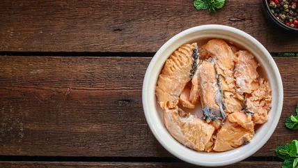 When you buy fresh salmon, it often comes with the salmon's skin and bones attached. Many people assume that canned salmon doesn't have either since it's been through a whole preservation process. This is where they're wrong. To make your tinned salmon dishes more pleasant, you should remove both the skin and bones. This will leave you with tender, smooth meat that's easy to eat. You can easily do this by using tweezers to pick through the meat.