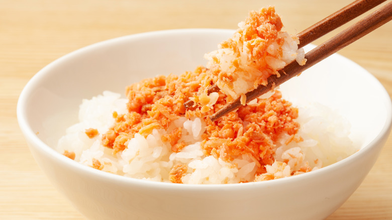 Each type of salmon has a unique flavor and texture, even when canned. Consider your recipe carefully to determine if the fish should be the shining star or a warm complement to the dish. For example, if you want the salmon to punch your taste buds in the face, opt for sockeye, as it has a richer flavor profile. On the other hand, if you want a milder taste, go with coho — it's also lighter in color, so if you want a more baby-pink aesthetic, this type of salmon is optimal. For a real treat, get chinook (king) salmon, as it's high in fat and has a texture that'll melt in your mouth. In addition, watch out for the canned salmon brands you're buying, as that'll affect flavors too. Typically, the cheaper, lower-quality brands will have a more fishy smell and a harder texture — you get what you pay for.