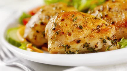 A marinade or brine can help tenderize chicken while keeping it moist and full of flavor. Using a fork to poke a few sets of holes into your raw chicken helps your marinade — whether it's yogurt, a salad dressing, or an easy, homemade barbecue sauce – permeate and cling to the meat. This technique is convenient if you're pressed for time. You can add elements such as acid, sweetness, heat, and umami to the meat by marinating boneless chicken for only 15 minutes. However, don't overdo it: Marinating for more than 12 hours for bone-in chicken or 2 hours for boneless runs the risk of over-tenderizing the meat, making it mushy and unappetizing.