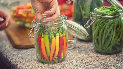 Pickling typically involves soaking ingredients in a brine of salt, sugar, and an acid — usually vinegar, but you can also use citrus like lemon juice for a milder flavor. It's also common to add herbs, spices, and aromatics like garlic and onions. While quick and traditional pickling use the same ingredients for the brine, quick pickling leaves out the process of sterilizing and sealing the jars with heat. This step is a must for pickles that last for months, even at room temperature, but if you want a smaller amount of pickled peppers that you plan to eat fairly soon, quick pickling is the much easier way to go.