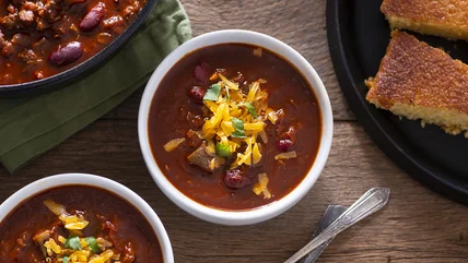 To make this pick even better, top this chili with the classic shredded cheddar cheese and sour cream when serving. To amp up the fresh flavors, add a squeeze of lime right before digging in, and an extra sprig of fresh cilantro if you have it on hand.