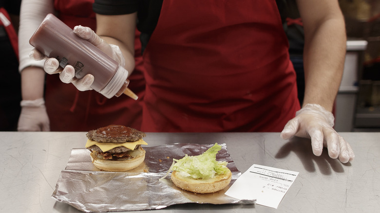 For the Five Guys viral hack to be a success, you must secure an additional bun with your order. Otherwise, you're in for a messy dining experience if you attempt to eat the second burger patty and toppings sans bun. Consider that not all fast-food tricks are met with enthusiasm by restaurant chains (such as the annoying McDonald's hack for fresh French fries). As for the Five Guys hack, there's no guarantee that staff will provide a bonus bun. After all, the hack is depriving the store of money, and unsurprisingly, many businesses balk at the notion of lost profits.