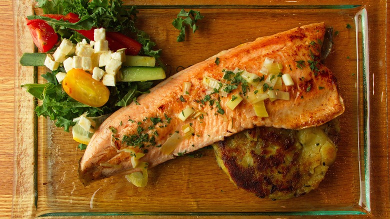 There are a surprising number of people who claim they just don't like any seafood. This is especially wild since there are so many types of seafood and they taste so drastically different — you'd think there'd be something for everyone. Sometimes different fish do have some flavor similarities, though, and such is the case with Arctic char and salmon.