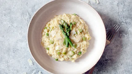 Sit down at any fine-dining restaurant, and you're bound to find some version of risotto on the menu, likely gussied up with chanterelle mushrooms, summer truffle, spring peas, or some other elegant accent. But at its core, risotto is a humble dish similar in look and texture to rice porridge or pilaf. To make risotto, a hot broth is added — ladle by ladle — to a shallow pan of rice that bubbles away on the stovetop. This gentle cooking process allows the grains to slowly release their starch, resulting in a naturally creamy texture.
