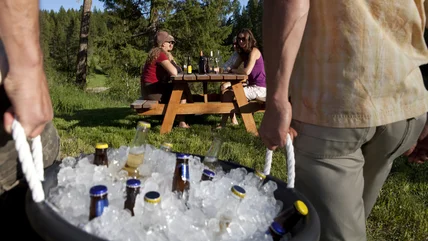 A summertime party without ice is a party foul no one wants to commit; ensuring your guests have access to ice-cold drinks is key. Even when guests mainly drink from cans and bottles, having extra solo cups and fresh drinking ice on hand will make all the difference on those extra hot days. To keep the ice confusion to a minimum, consider bringing two separate coolers: One just for ice with a scooper and one full of cold drinks. Make sure they are color-coded or labeled so people don't take ice out of the wrong cooler.