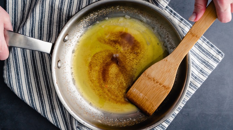 While using brown butter can certainly make for a great grilled cheese, don't stop the trick there. There are tons of additional ways to ramp up the flavor and create a truly epic meal. For one thing, you can add an unexpected ingredient to the brown butter to create an even more caramelized flavor and aroma — powdered milk. This introduces more milk solids to the butter, which are the parts that caramelize during the browning process and give brown butter its unique taste and color.