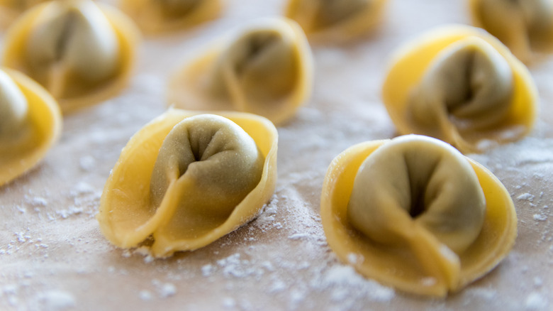 Instead of small pasta, consider using ring-like tortellini in its place. This pasta is a far cry from varieties usually associated with pasta e fagioli, as it's a lot more substantial. It also comes stuffed with a variety of tasty ingredients, such as prosciutto or ricotta cheese. While tortellini are excellent for adding new flavors, they also make pasta e fagioli a lot more filling. With this swap, you can turn a humble bowl of Italian soup into a full-fledged meal.
