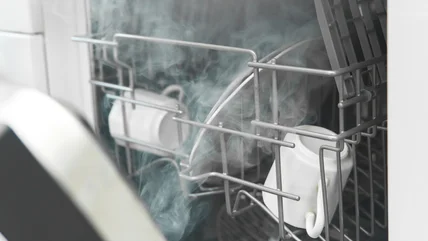 Just make sure to close the dishwasher again with the towel half inside so it can get to work absorbing most of the steam. If you try this hack and still find your dishes to be a bit damp, you may have to turn to a few other simple tricks to remedy the issue. Keeping the dishwasher door slightly ajar after the cycle completes can also help release some of the extra steam.