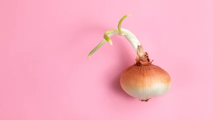 Well, onions are bulbs, so they're not too different from tulips. When harvested, onions are at the later stages of their lifecycle, so you've got to use them up fast. If you leave them alone, they'll want to do what most living things do: Multiply or reproduce. As a last effort to have onion babies, they'll start sprouting once the onions come out of dormancy. Like many other fruits and vegetables, onions release a growth hormone called ethylene. At the end of dormancy, they'll produce an increased amount of it, which then causes the sprouts to start growing.
