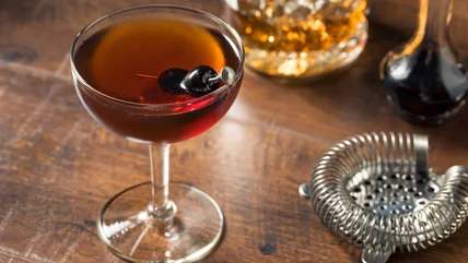 While Manhattans are traditionally made with rye whiskey, bourbon Manhattan recipes are also acceptable. You can make a similar swap when whipping up a batch of Black Manhattans, but you should understand the impact that each liquor will have on the completed cocktail. Bourbon is a type of whiskey subject to some strict manufacturing rules. For instance, it must be American-made and the finished product can't be below 80 proof. Similarly, rye whiskey is subject to its own rules, mainly that it must consist of a minimum of 51% rye grain.