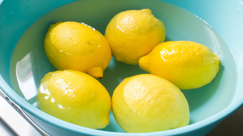 Whether you're making a tangy lemon tart, mezcal Paloma, or a lime-kissed ceviche, citrus fruits come in many shapes, sizes, and flavors and flaunt endless uses. But like any other produce, citrus fruits don't last forever. As cute as a fruit basket centerpiece is, whole room-temperature citrus fruits only last up to a week. When stored in the refrigerator, they can last up to three weeks — an upgrade from the room temperature lifespan. However, whole citrus fruits will last even longer if you store them in water.